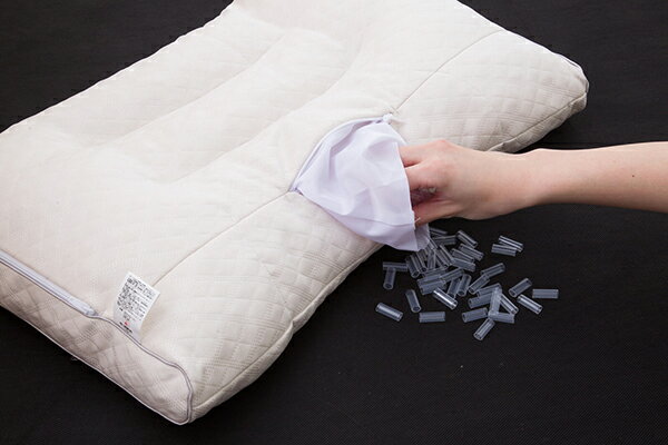 ◆高さ調節は詰めもののパイプの抜き差しにより首部と後頭部の2ヵ所調節可能。