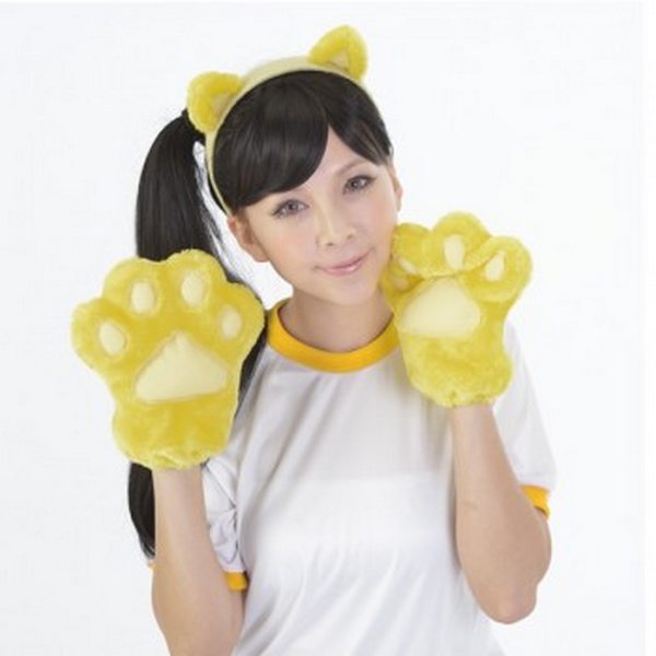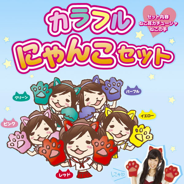 カラフルにゃんこセット 全5色 ねこ耳カチューシャ ねこの手【動物 ネコ グローブ 手袋 アニマル 赤 黄 緑 ピンク 紫】定形外発送可 1p350円 2p510円 マジックナイト JG672