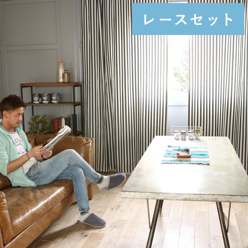 カーテン オーダーカーテン ドレープカーテン セット 4枚セット 4枚組 サーフ 西海岸 塩系 男前インテリア 男前 モノクロ ナチュラル おしゃれ【最短6営業日出荷】フォルテセット男前カーテン レースセット ストライプ【代引き不可】