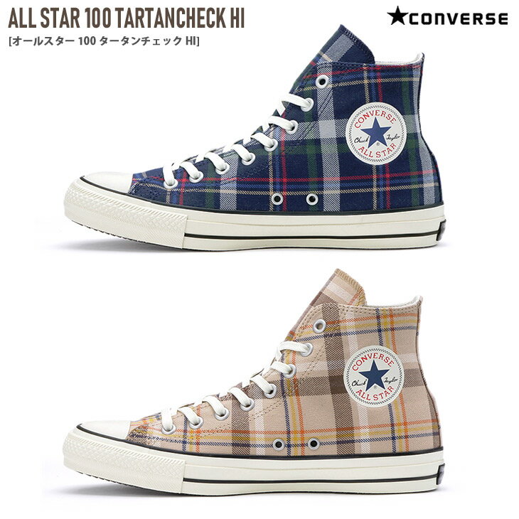 2019年秋冬新作! コンバース オールスター 100 タータンチェック CONVERSE ALL STAR TARTANCHECK HI スニーカー レディース ネイビー ベージュ 22.5 24.5 キャンバス チェック ハイカット レースアップ カジュアル カラフル 柄 靴 おしゃれ 歩きやすい 散歩